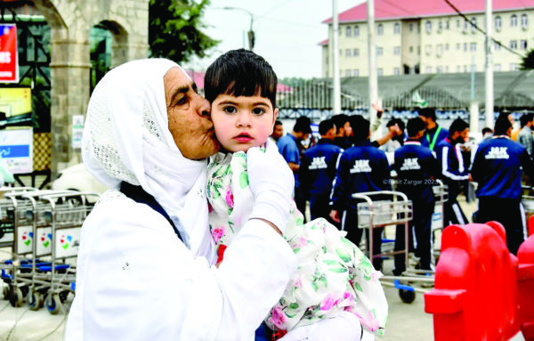عازمین حج کے پہلے قافلے کی روانگی کے موقعہ حج ہاس سرینگر کے باہر ایک عازمہ کمسن کو بوسہ کرتے ہوے۔۔۔ساحل میر