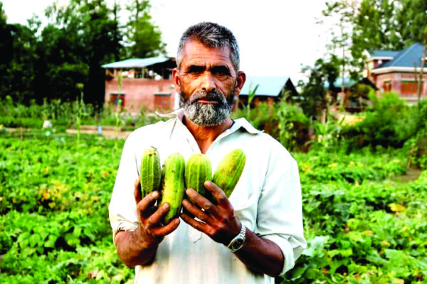 کولگام کے وانی گنڈ گائوں میں باغ مالکان روزانہ تین ہزار کلو کھیرے کاٹ رہے ہیں۔۔۔ فوٹو ۔۔ساحل میر
