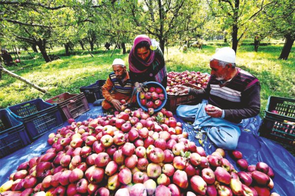 وادی میں باغ مالکان سیب کی فصل کو اُتارتے ہوئے۔۔۔ساحل میر