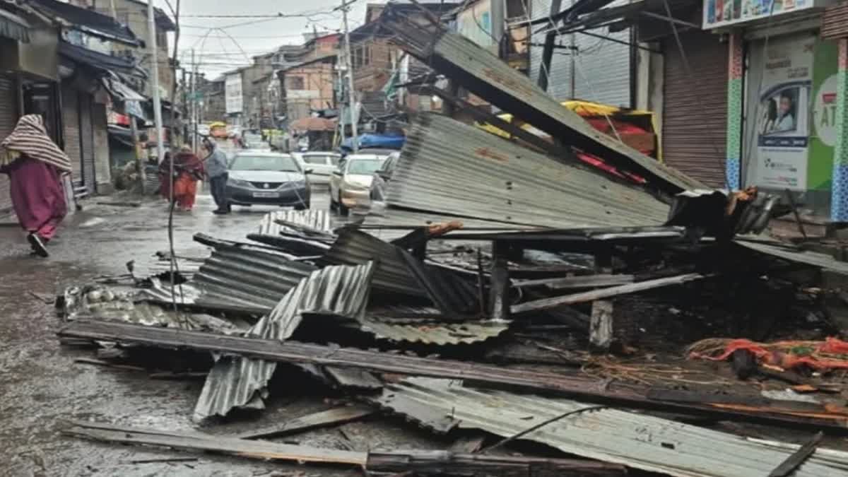 سری نگر //شہر سرینگر، جنوبی و شمالی کشمیرمیں جمعرات کی سہ پہر تیز آندھی آنے سے متعدد کانوں اور دیگر تعمیراتی ڈھانچوںکو نقصان پہنچا جبکہ لاسی پورہ پلوامہ میں کولڈ سٹورج گرنے سے ایک شخص کی موت واقع ہوئی اور دیگر 4شدید زخمی ہوئے۔پلوامہ لاسی پورہ علاقے میں زیر تعمیر کولڈ سٹوریج ڈھانچہ گرنے سے ایک شخص کی جان چلی گئی جبکہ چار دیگر زخمی ہو گئے۔ تیز ہوائوں کی وجہ سے زیر تعمیر کولڈ سٹوریج کے لوہے کے کھمبے گر گئے جس کے نتیجے میں کم از کم پانچ افراد زخمی ہوئے۔ زخمیوں کو ہسپتال منتقل کیا گیا جہاں ان میں سے ایک زخموں کی تاب نہ لاتے ہوئے چل بسا۔ مہلوک کی شناخت سجاد احمد میر ساکن روہامہ رفیع آباد کے طور پر ہوئی ہے جبکہ زخمیوں کی شناخت جسپریت سنگھ ساکن امرتسر، اعزاز کمار اور ہلال احمد راتھر ساکن بڈگام اور نصیر احمد میر ساکن بارہمولہ کے طور پر ہوئی ہے۔محکمہ موسمیات نے پیشگوئی کی تھی کہ شہر سرینگر ، شمالی و جنوبی کشمیر میں خاص طور پر قریب ساڑھے 4بجے تیز آندھی آئے گی۔پیشگوئی کے عین مطابق قریب 40منٹ سہ پہر کو زوردار آندھی آئی۔50 سے 70کلو میٹرفی گھنٹہ کی رفتار سے چلنے والی آندھی کی وجہ سے شہر سرینگر اور پلوامہ میں درجنوں مکانوں اور دکانوں کی چھتیں اڑ گئیں اور ٹین کی چادریں ہوا میں تیرتی ہوئیں گاڑیوں پر گھر گئیں۔اسکے علاوہ ٹین سے بنی ہوئی دیواریں بھی گر گئیں اور لکڑی سے بنے عارضی شیڈ بھی گر گئے۔کئی علاقوں میں گاڑیوں کو شدید نقصان ہوا اور کئی علاقوں میں بجلی کے کھمبے اور درخت کھڑ گئے اور شام تک کئی علاقوں میں بجلی کی سپلائی بھی بند رہی۔ بارہمولہ اور کولگام کے کئی علاقوں میں بھی تیز آندھی چلی۔محکمہ موسمیات نے کہا ہے کہ17-19 اپریل کو عام طور پر ابر آلود اور کچھ جگہوں پر(40-50 کلومیٹر فی گھنٹہ) کی رفتار سے تیز ہوائیں/ژالہ باری کے امکان کے ساتھ صبح اور شام کے اوقات میں کئی مقامات پر ہلکی بارش ہوسکتی ہے۔20-24 اپریل کو عام طور پر خشک موسم رہے گا جبکہ25-26 اپریل کو دوپہر کے وقت چند مقامات پر تیز ہوائوں کے ساتھ ہلکی بارش ہوسکتی ہے۔